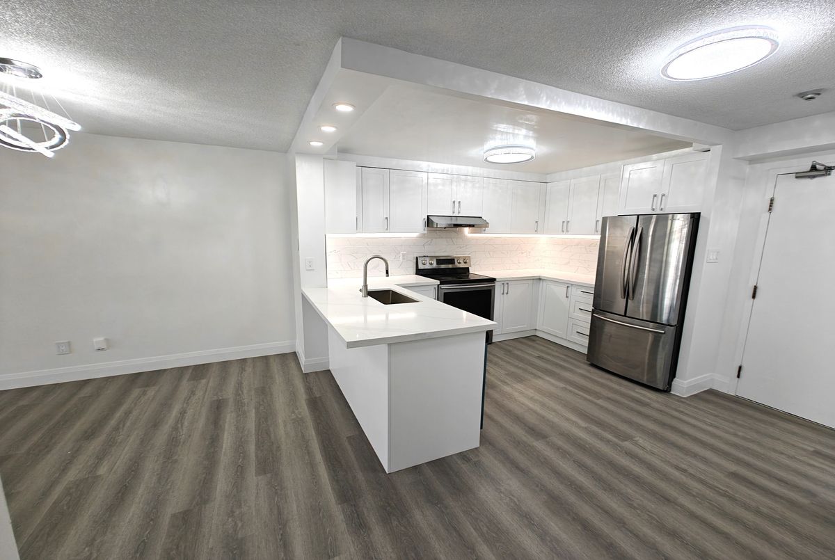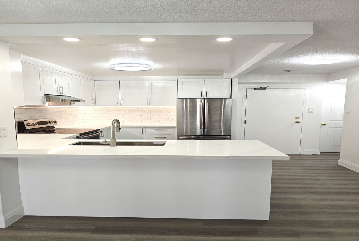 Move-in Ready Home in a Serene, Green Setting. Welcome to your new home, ideally situated with picturesque views of Taylor Creek Park and surrounded by lush greenery. This spacious unit features an open-concept layout seamlessly connecting the kitchen, living, and dining areas perfect for both everyday living and entertaining. Newly renovated, spent over $50K, this home boasts a modern kitchen and updated bathrooms, new laminate flooring throughout, and fresh paint for a clean, contemporary feel. Offering two generously sized bedrooms, two bathrooms, and a versatile den that can serve as a home office or an additional room, this unit provides flexibility to suit your lifestyle. All bedrooms and the den overlook tranquil green space, enhancing the sense of peace and privacy. Additional features include a breakfast bar, Ensuite laundry, a master bedroom with a walk-in-closet and a private 3-piece Ensuite. Residents also enjoy access to a range of building amenities, including a gym, sauna, hot tub and party room. Conveniently located close to all essential amenities, this home offers comfort, style, and convenience in a beautiful natural setting.