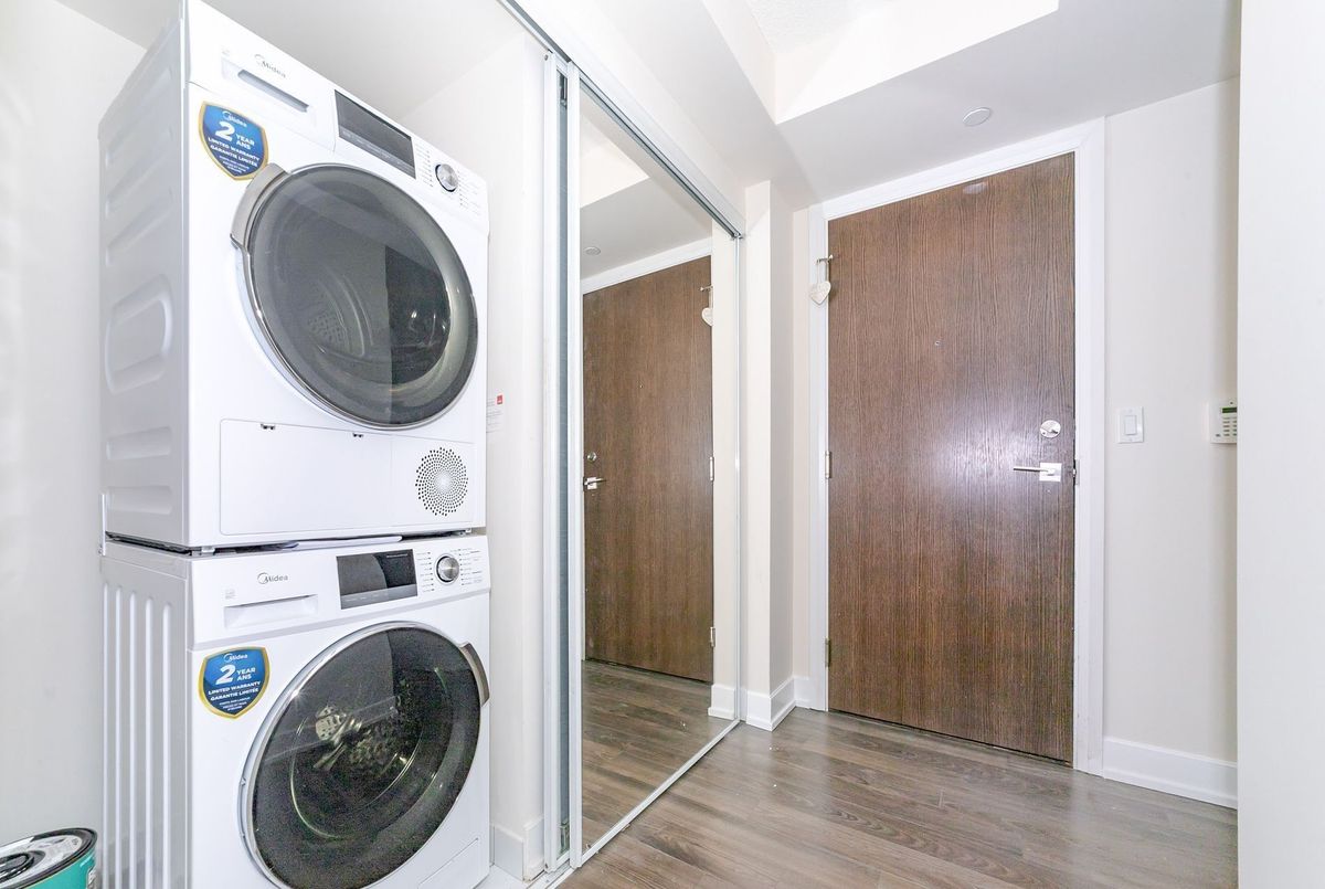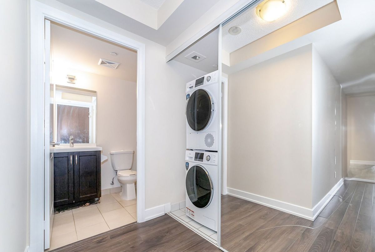 Located in the center of Tridel West Village. Experience the pinnacle of luxury living within a master-planned condominium community, renowned for its high-end designs and exceptional location. This stunning 783 Square Foot corner unit offers two spacious bedrooms with a distinctive split floor plan, ensuring privacy and comfort. The two full bathrooms provide ample space for relaxation and self-care, adding a touch of indulgence to daily routines. The modern kitchen features sleek quartz countertops, perfectly complemented by laminate flooring that extends seamlessly throughout the unit. Revel in breathtaking sunset views from every room a daily spectacle that will leave you awestruck. With 9-foot ceilings enhancing the sense of openness and tranquility, this home delivers an inviting and serene atmosphere. Step onto your private balcony to unwind while savoring panoramic views that stretch as far as the eye can see. The unit includes one parking space and a locker for added convenience. Ideally situated near Kipling/Islington Station and major highways (427, 401, and 403), this residence combines luxury with practicality.