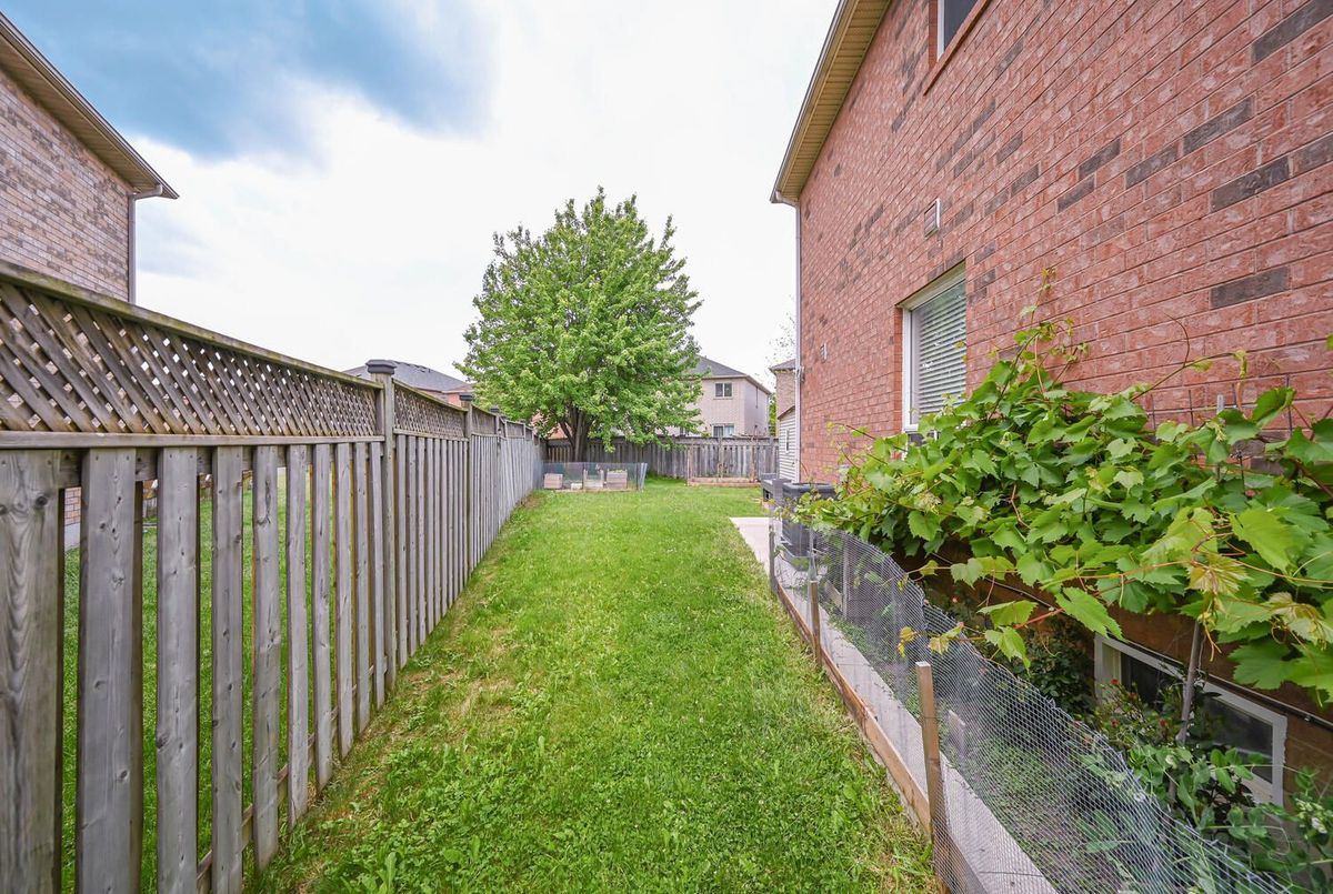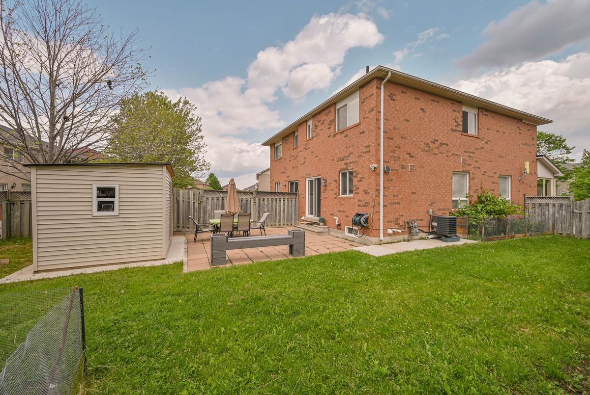 Sensational and airy 3-Bedroom Semi! Pride of ownership shines throughout this stunning 3- bedroom, quality semi-detached home, ideally situated on a quiet crescent just a short walk to the GO Train station. This all-brick model is nestled on a rare premium oversized pie-shaped lot truly a pool-sized backyard! Step inside to find a bright and spacious layout featuring a separate family room with a cozy gas fireplace, elegant living and dining areas with rich hardwood floors and pot lights. The big, bright eat-in kitchen offers ample counter and cabinet space, a custom backsplash, and a walkout to the fully fenced, private backyard perfect for entertaining or relaxing in your outdoor oasis. Upstairs, the master bedroom retreat features his-and-hers closets and a private 3-piece ensuite bath and 2 good size bedroom with 2 full washrooms. Basement has framing completed as well a fully 3 piece washroom already operational. Hot water tank is owned, Garage comes with EV connection for your electric vehicle charging (40 amps). With parking for two large vehicles and a small vehicle on the driveway and a location that cant be beat close to schools, parks, and all amenities this home is the total package for families. Don't miss your chance to own this move-in-ready gem with a sensational yard and unbeatable layout!