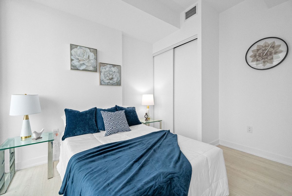 Welcome to M City 2 Condos (Unit 2701), a one-year-new luxury residence in the heart of Mississauga. This stunning 2-bedroom + media, 2 full bathroom suite offers a thoughtfully designed layout with 738 sq ft of interior living space plus a 143 sq ft open balcony, ideal for modern urban living. The open-concept kitchen, living, and dining areas flow seamlessly to the spacious balcony, showcasing breathtaking city views and spectacular sunsets from the 27th floor. Enjoy 5-star building amenities and an unbeatable walkable location just steps to Square One Shopping Centre, GO Transit Terminal, Celebration Square, parks, UTM, T&T Supermarket, groceries, restaurants, public transit, Sheridan College, Living Arts Centre, movie theatre, future LRT, schools, YMCA, library, and more. The suite includes in-suite laundry, one parking space, one locker, internet, and a smart home monitoring system (basic)-offering the perfect blend of luxury, convenience, and lifestyl
