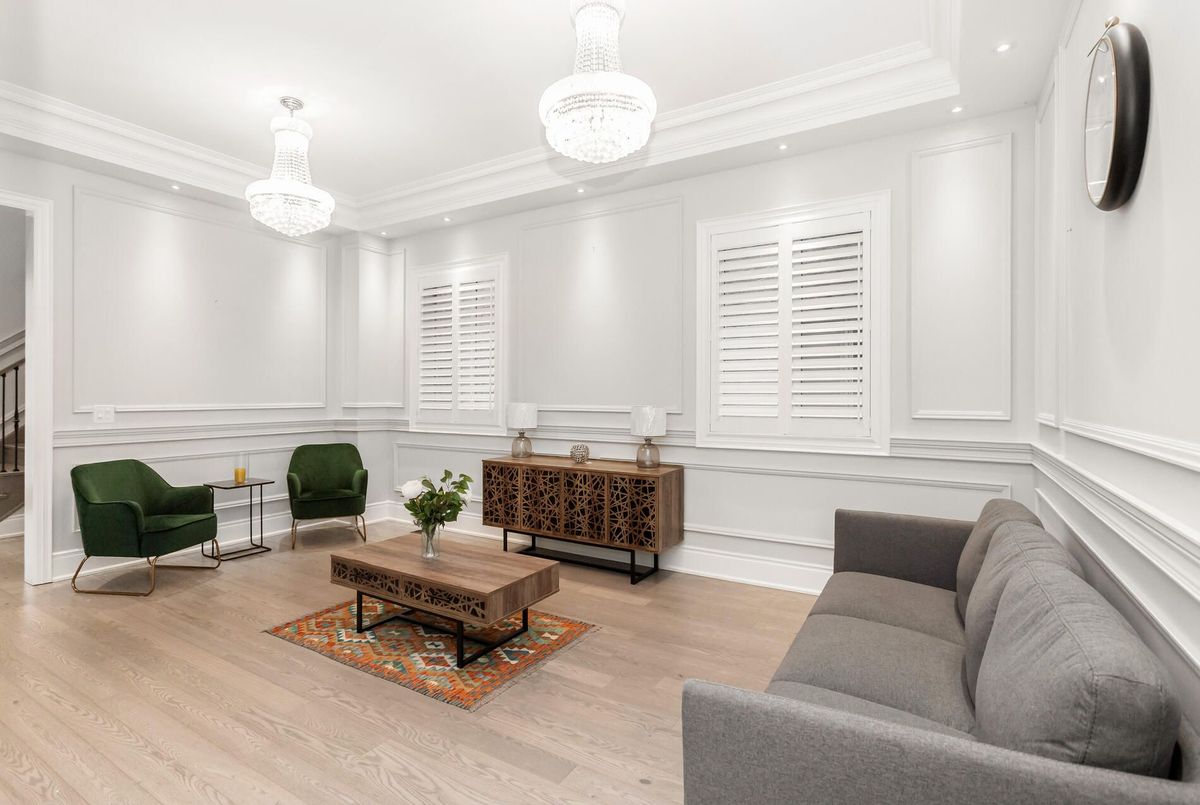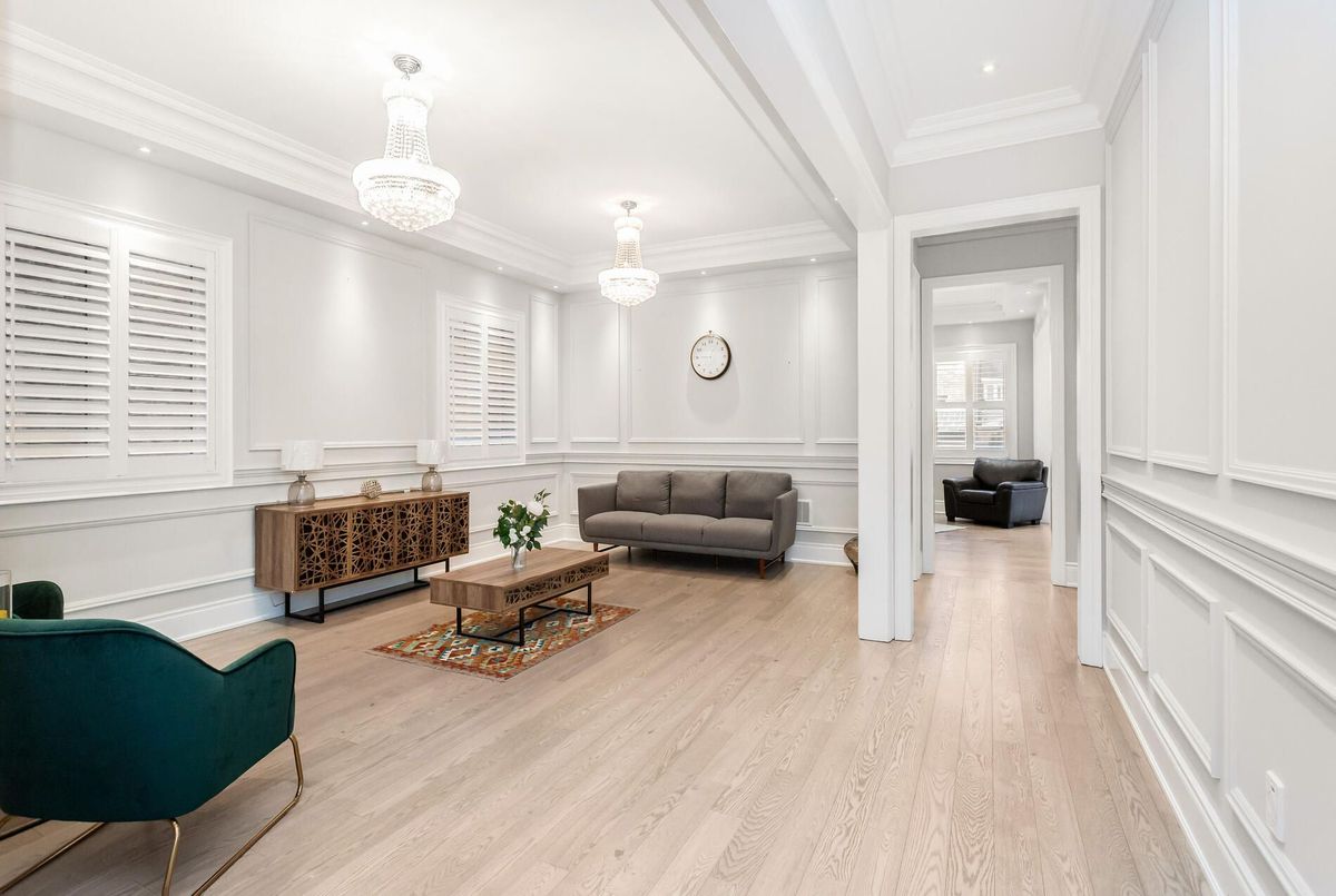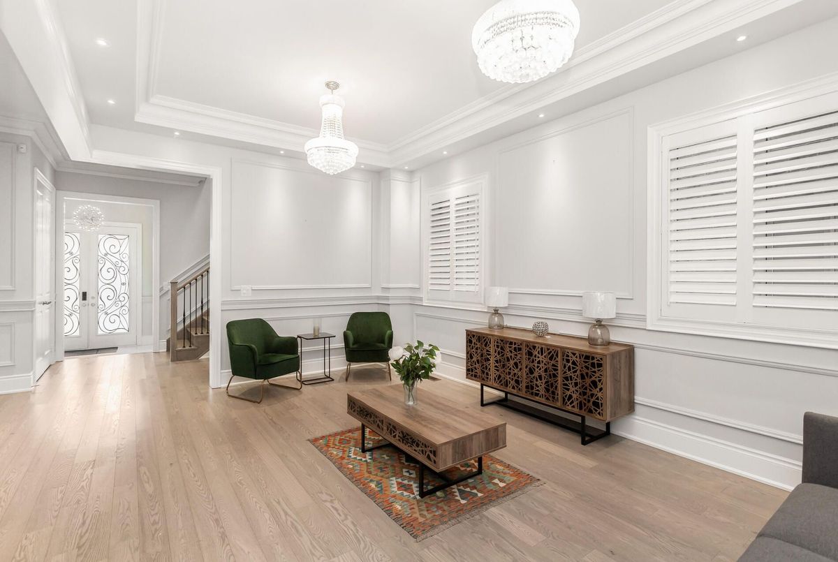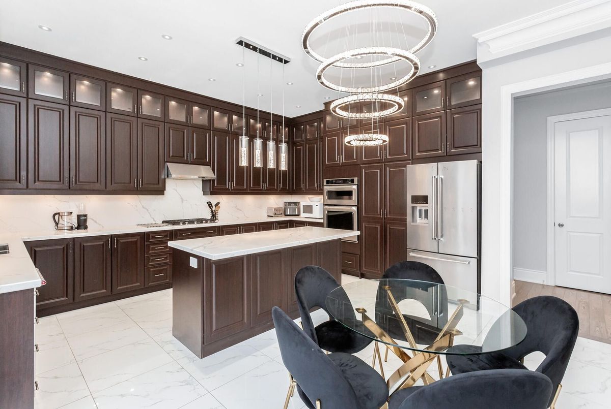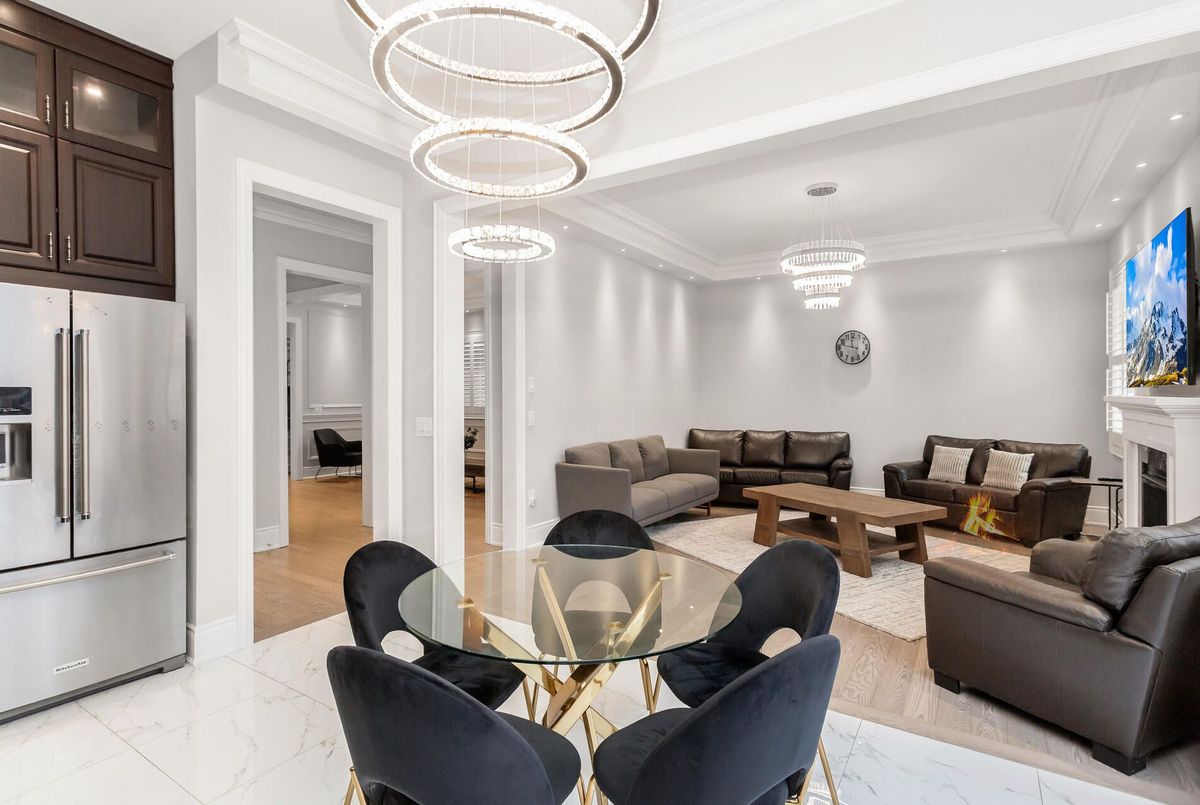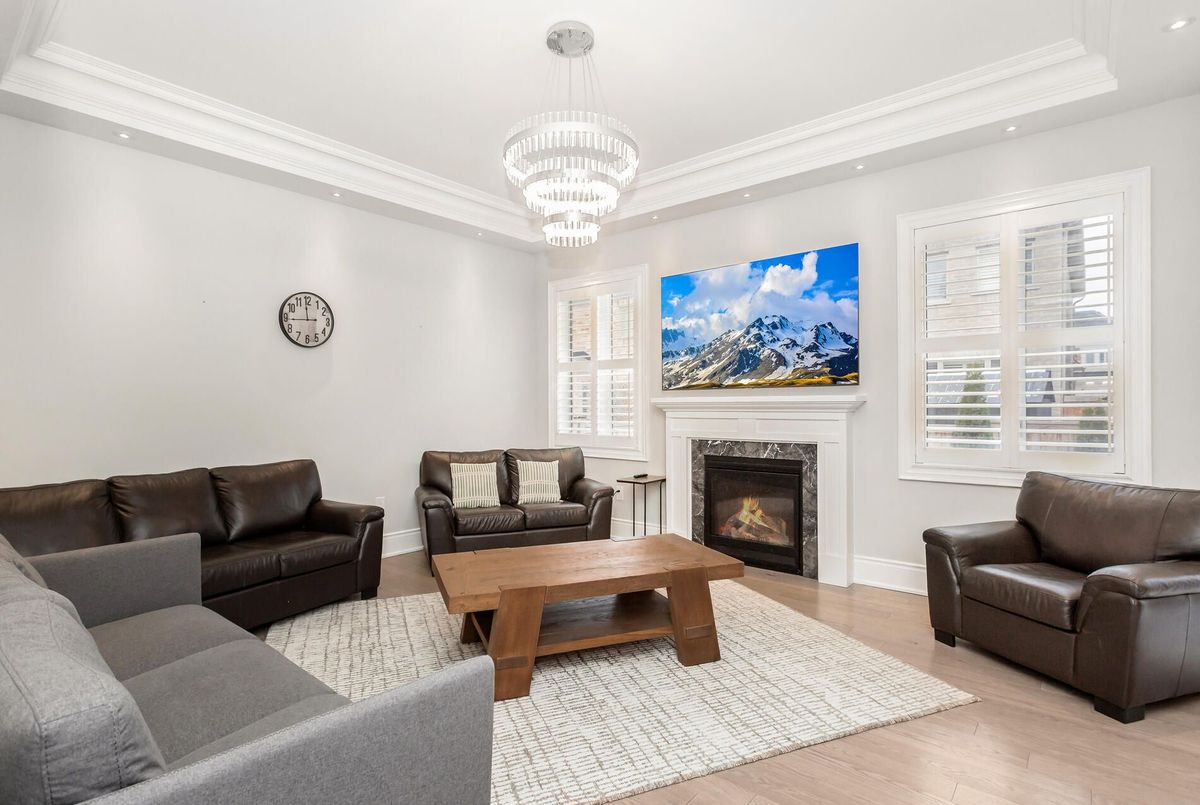 Exquisite gem in the highly sought-after Ford community. Offering approx. 5,000 sq. ft. of living space with 5+3 bedrooms and 5+1 baths. Elegant main level features wide-plank hardwood floors, wainscoting, 10' ceilings with crown Moulding and custom LED chandeliers with pot lights throughout. Eat-in gourmet kitchen with premium KitchenAid appliances, quartz countertops, oversized centre island, and extended cabinetry. Second level boasts five spacious ensuite bedrooms, including a primary retreat with spa-inspired 5-pc bath. Legal 2-bedroom + den basement apartment with separate entrance, full kitchen, quartz counters, and high-end stainless steel appliances-ideal for in-laws or rental income. Meticulously landscaped with full stone interlock and private cedar-lined backyard. A must-see family home
