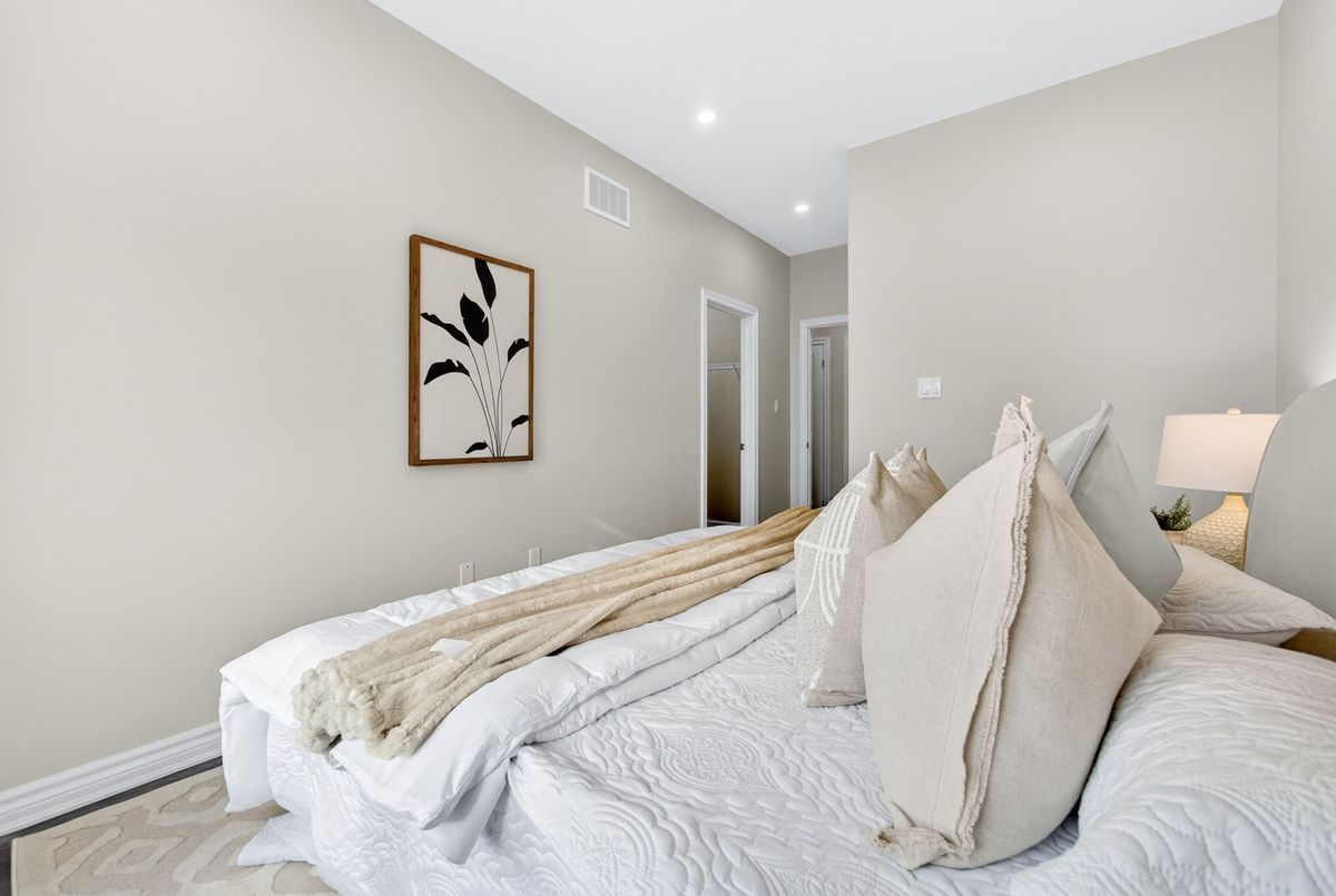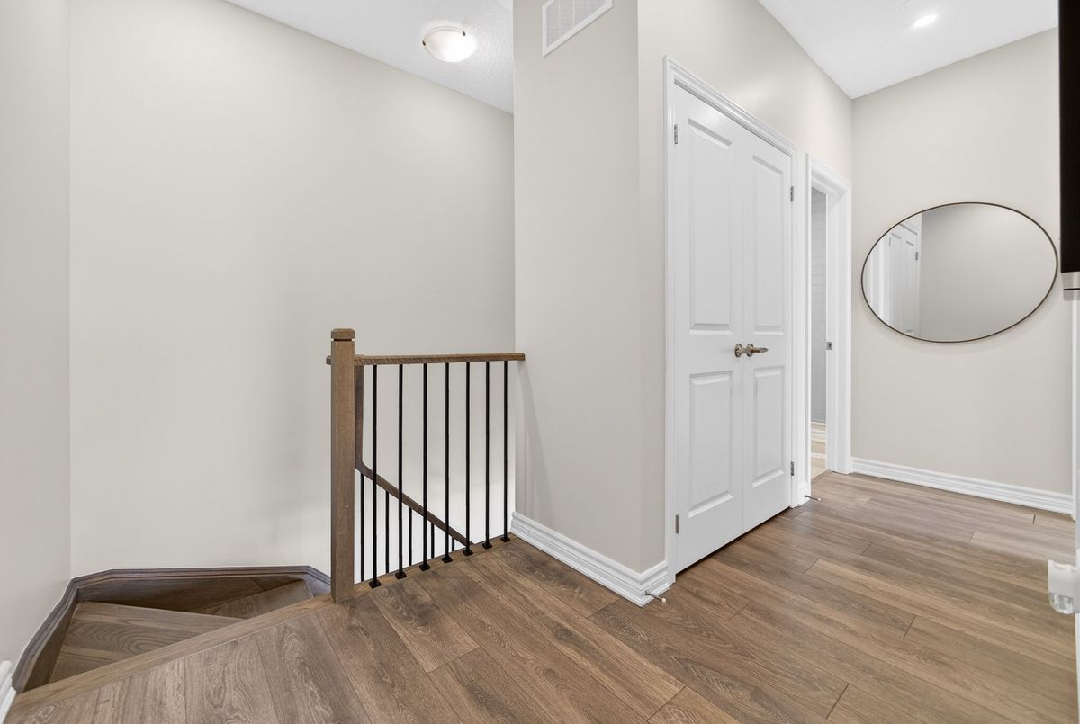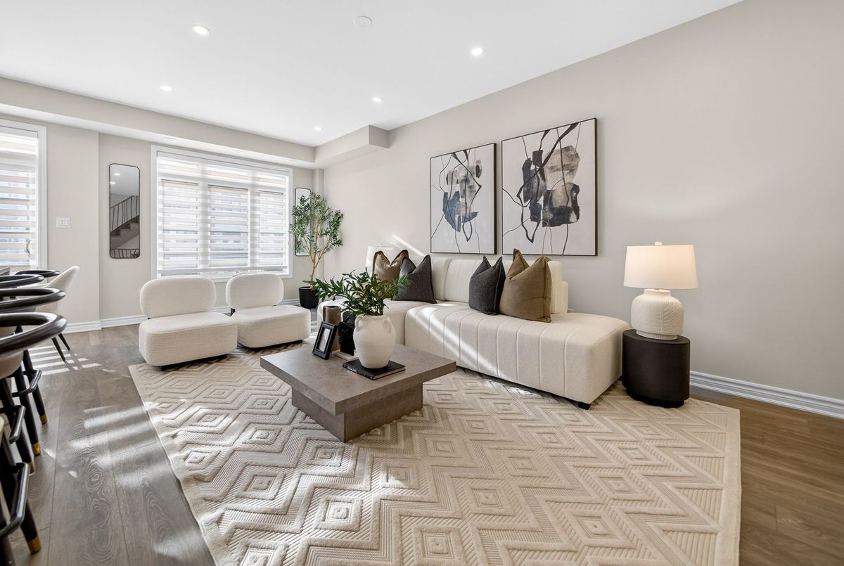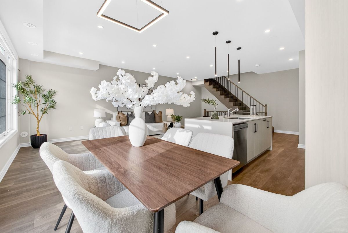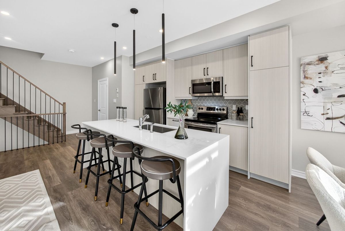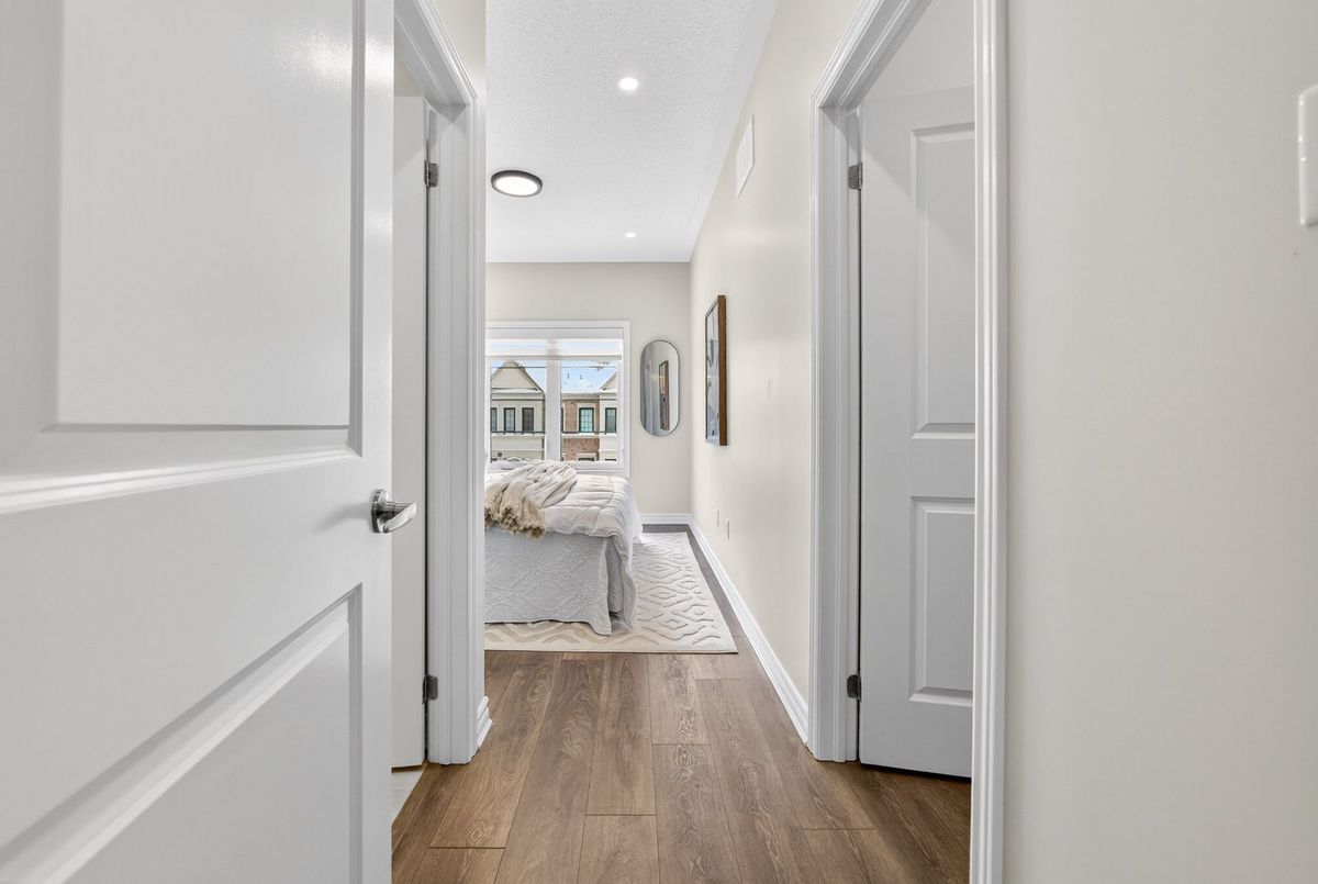 This stunning freehold three-storey townhome in Milton, built by the award-winning Great Gulf, offers a luxury open-concept layout with premium upgrades across all levels. The home features 9-foot ceilings on the main, second, and third floors, creating an airy and spacious atmosphere. Premium Kitchen with upgraded soft-close cabinet , quartz countertop with a waterfall edge, glass backsplash, and designer pendant lighting. Modern Flooring & Finishes: Laminate flooring is found throughout the home, complemented by hardwood stairs with iron pickets. The entire interior has been professionally painted. New Pot lights contribute to a luxurious look by offering a sleek, unobtrusive design that provides versatile, high-quality illumination , Smooth Ceiling for a Neat Look. Spacious Bedrooms & Baths. Both bedrooms are sized to accommodate King and Queen beds. The three upgraded washrooms feature high-ceiling mirrors, Quartz Counter Tops and glass enclosures for both the master ensuite and the second bathroom . Modern Window Rollers . The property includes three-car parking with no sidewalk and features balconies on both the second and third levels. Entrance to Home from garage and Garage opener for Easy Daily Access .Located in the visionary master-planned community of Milton Village, the home is positioned near Hwy 25 and Britannia Road. Conveniently close to the Milton GO Station and Highways 401 and 407 and Minutes away from Rattlesnake Point and Kelso Conservation Area