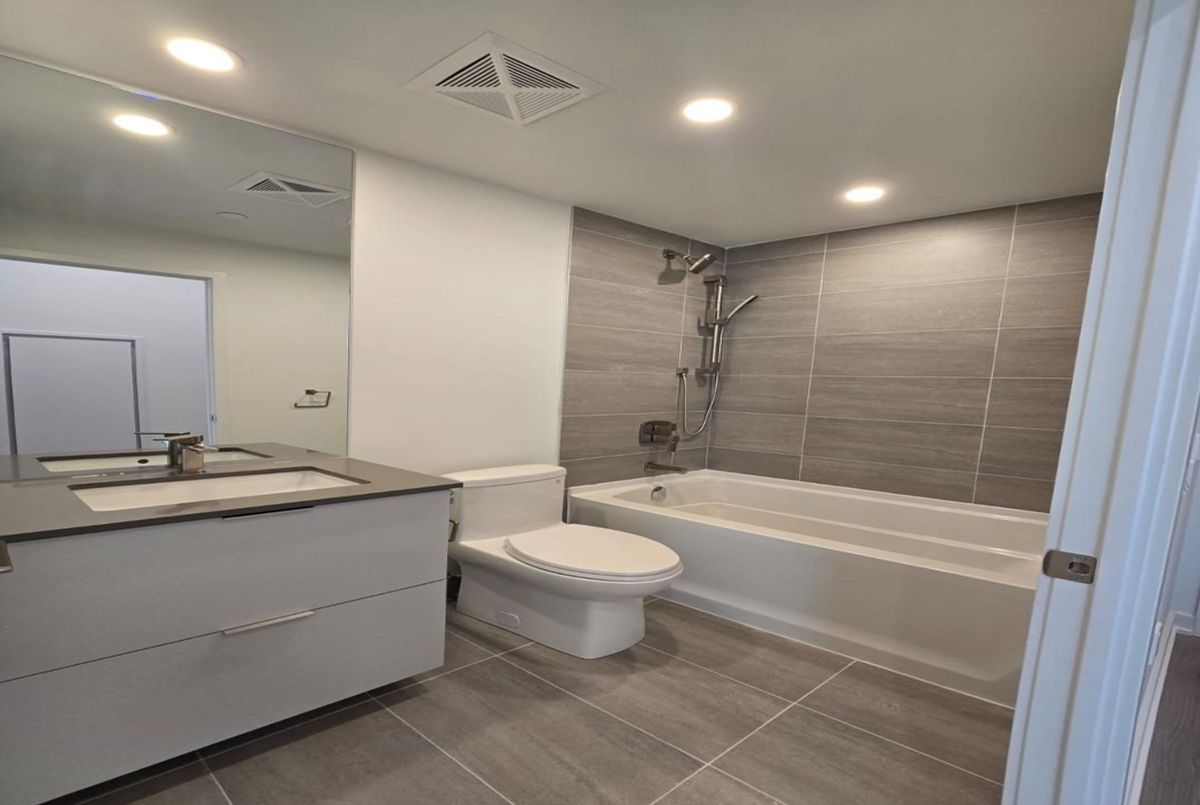 Discover contemporary living in this brand-new, never-lived-in suite at ALBA, offering over 20,000 sq. ft. of resort-style amenities in the heart of Mississauga. This beautifully designed 1 bedroom + den (ideal as a second bedroom) features 9 ft ceilings, a bright west facing exposure, and a smart open-concept layout that maximizes space and natural light. Enjoy 2 full bathrooms and step out to a generous 121 sq. ft. private balcony-perfect for relaxing with peaceful sunset views. Finished with sleek modern touches throughout and located just minutes to transit, parks, and everyday conveniences, this home is the perfect blend of comfort, style, and urban living.
