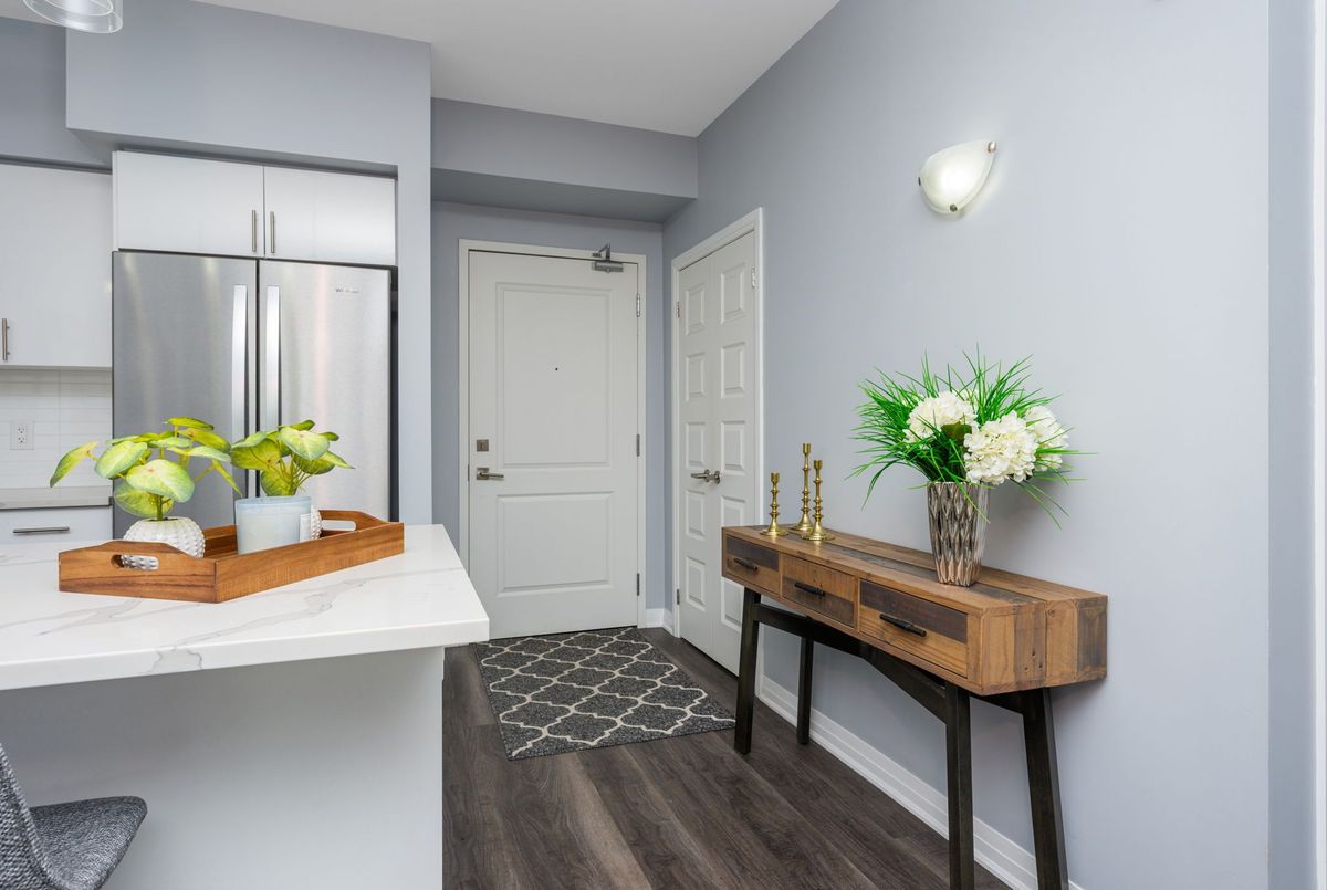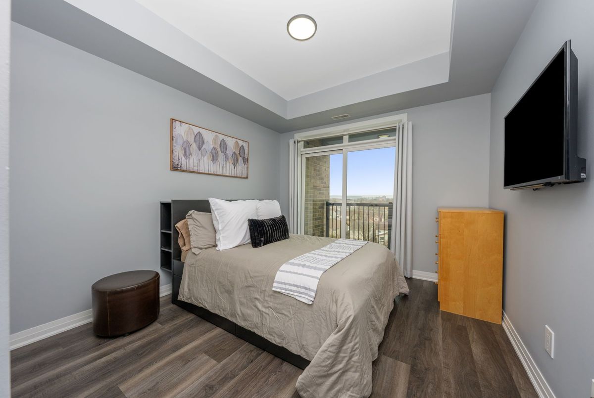 **Option for unit to be rented fully furnished at $2,200.00/mth* Luxury & convenience with an incredible view! Welcome to unit #614 at 610 Farmstead within the stunning 6Ten Condominiums building next door to the Milton District Hospital. Near restaurants, walking paths, parks, the Milton Sports Centre and transit, the walkability of Milton's WI Willmott neighbourhood does not disappoint, it is also a short drive to the 400 series highways - perfect for commuters. This 1-bedroom, 1 bathroom unit is located on the penthouse floor in a central location of the building close to elevators and refuse chute and showcases an incredible escarpment view from the oversized balcony which can be accessed by both the living room and bedroom. Bright and open, this layout is perfect for a single occupant or couple. The unit features a large kitchen with stainless steel appliances, oversized breakfast bar with seating for 4 and ample storage looks over the combined living and dining room, a Queen-sized bedroom with large, double closet, in-suite laundry and a large 3-piece bathroom with tiled shower and oversized vanity. The entire unit boasts luxury vinyl flooring, 9 foot ceilings and has ample storage. This unit also comes with 1 assigned parking spot and the unit of an assigned storage locker. Building amenities include a gorgeous party room with kitchen - perfect for larger gatherings, an underground car washing bay within the parking garage and a well stocked private gym.