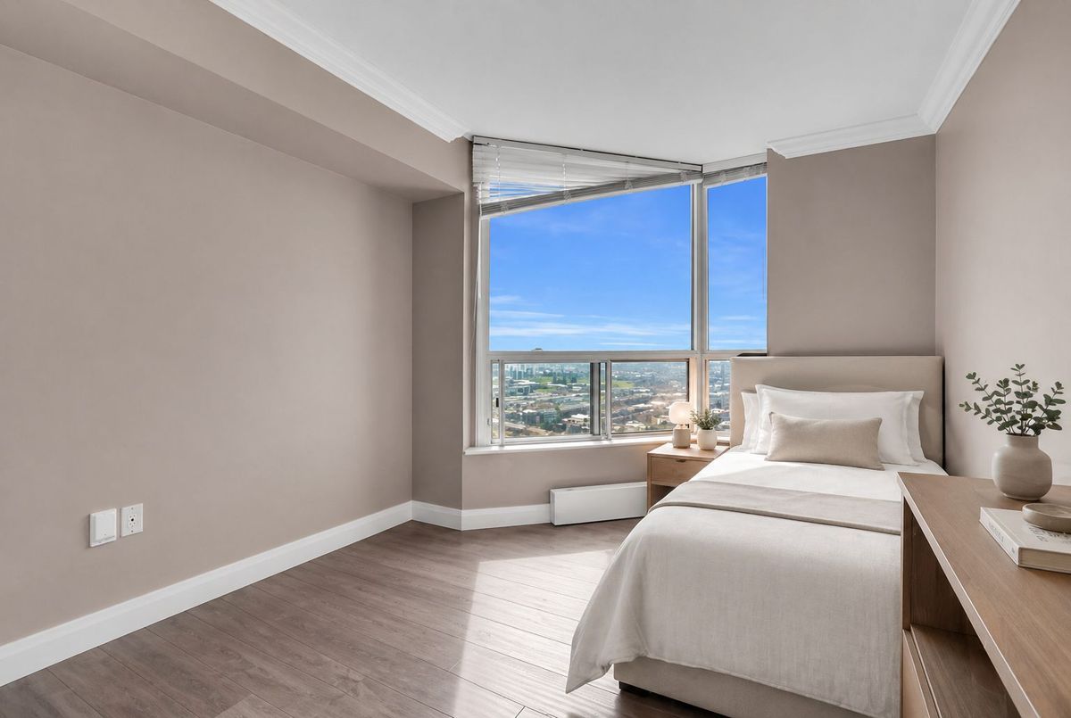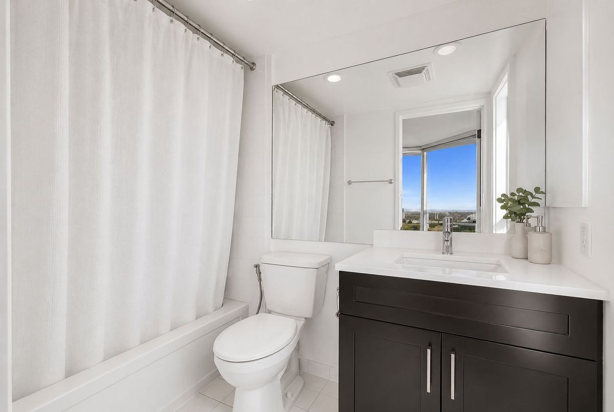 Impeccably designed ,spacious 2 bed plus Den , 2 full bath suite, Sun drenched corner unitwith floor to ceiling windows, you are wowed by the first impression of space, openness andhigh-end finishes. This condo is really a gorgeous buy for anyone looking for high quality andspace.The Primary Bed Room is a Private retreat with large floor to ceiling windows providing plentyof sunlight making the room warm and bright. A large walk-in closet and an ensuite bathcompletes this room. The Specious second bedroom having large window & adjacent full bathroom.Both bedrooms and the bathrooms are freshly painted. Kitchen is Cook Delight with Countertop,Backsplash, so much counter space, large numbers of cabinets.Views are just unobstructed and majestic, no buildings in front of the condo, so the views arestretched to the Horizon.Renovated with brand new Laminate Flooring and fresh Paining.