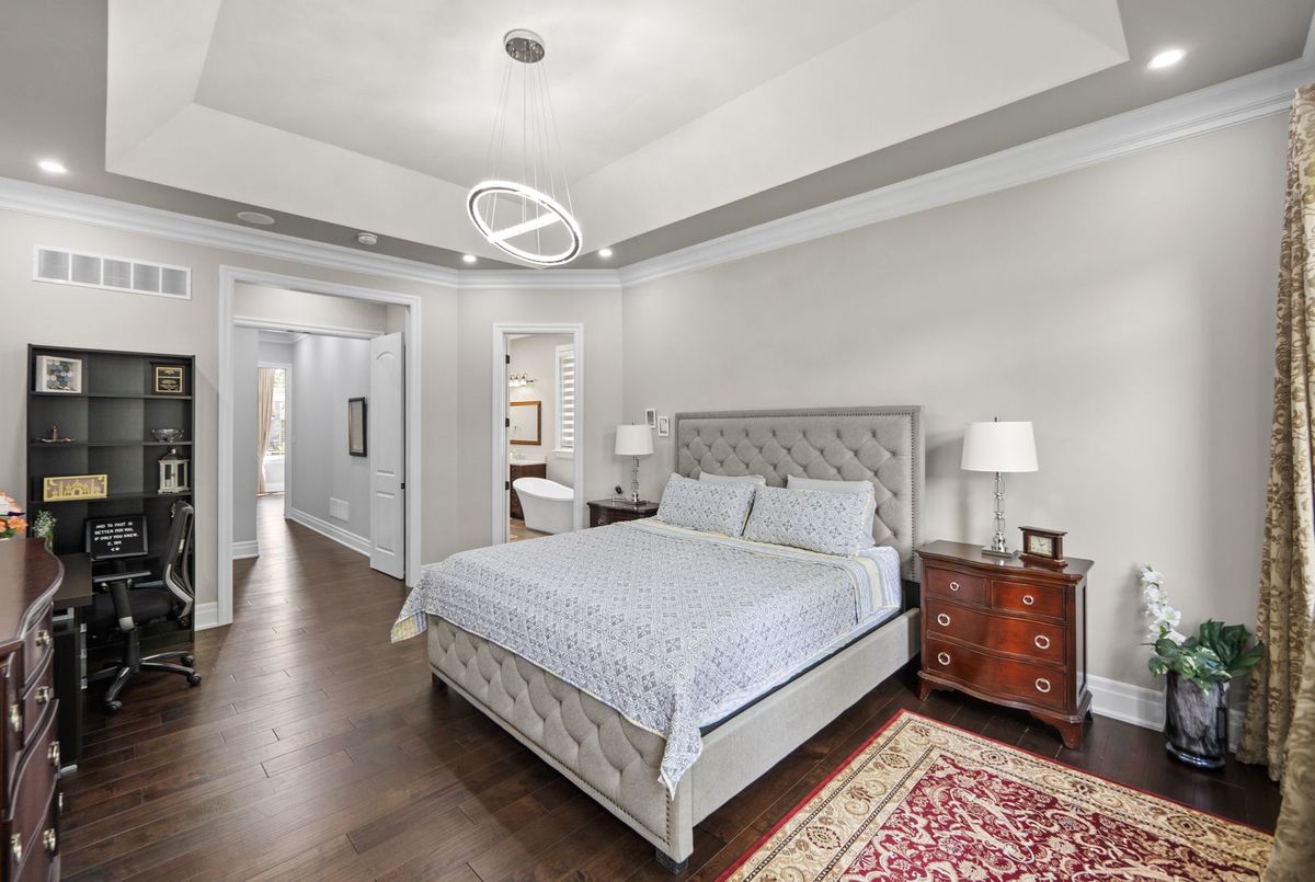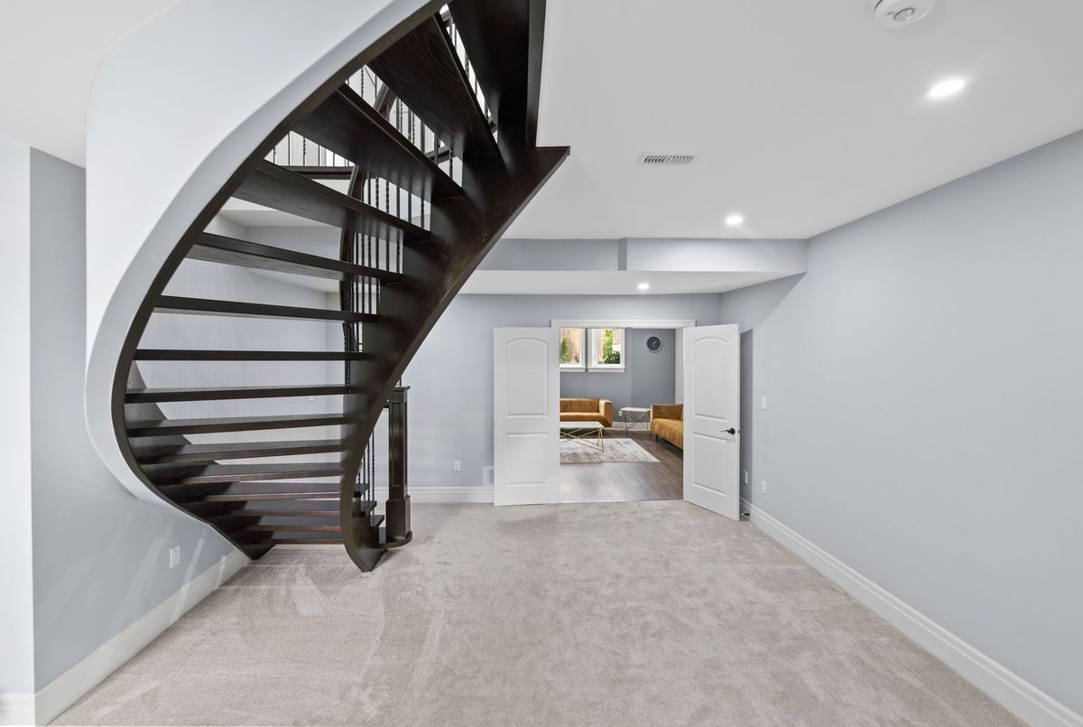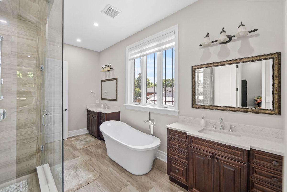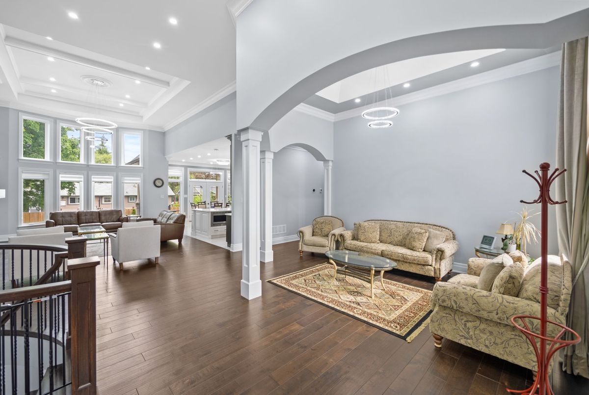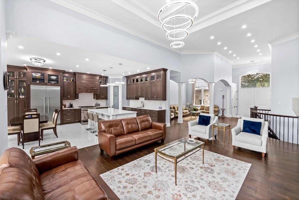 Custom-Built Oversized Bungalow | 6,000+ Sq. Ft. | In-Law Suite Stunning 2018 custom-built bungalow offering 4+3 bedrooms & 7.5 baths with ensuites in every room. Soaring 10 ceilings (14 in great room) with a dramatic wall of windows overlooking a private backyard. Chefs kitchen with Thermador appliances, maple cabinetry, oversized island & walk-in pantry. Premium finishes: hand-scraped hardwood, 8 solid doors, spray foam insulation & 10 poured concrete foundation. Walk-out to covered porch for outdoor entertaining. Finished lower level features a self-contained in-law suite with separate entranceideal for multi-generational living or income potential ($4K$5K/month). Built-in Sonos audio system, Central vacuum, custom millwork & soundproofed walls for privacy. A true blend of luxury, comfort & opportunity!