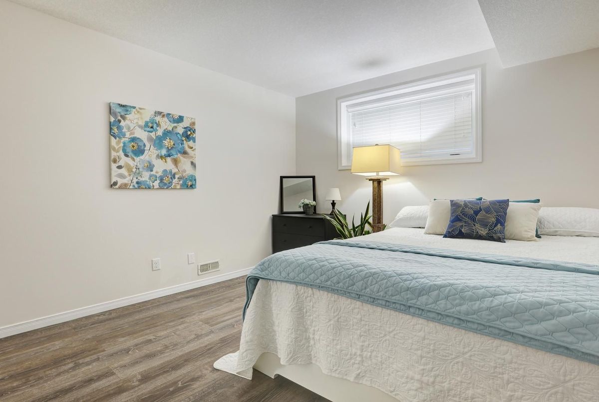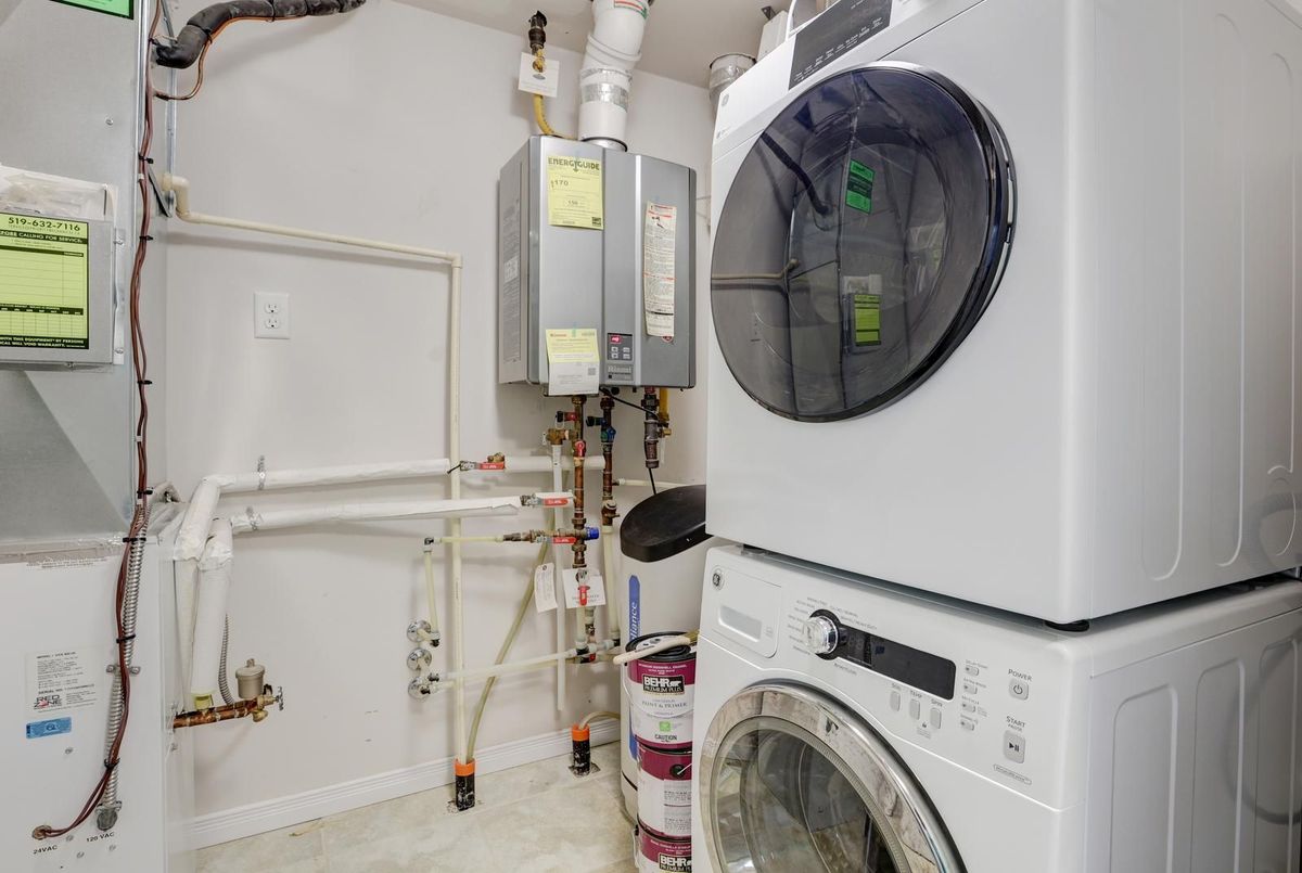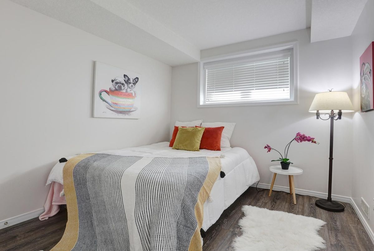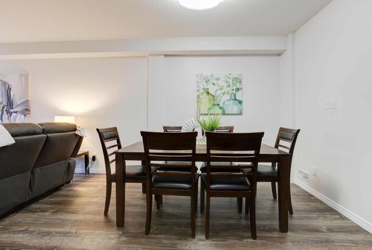 Welcome to this gorgeous stacked townhouse condo offering the perfect blend of comfort, convenience, and modern design! This beautifully maintained 2-bedroom, 1-bathroom unit features an open-concept layout with carpet-free living, neutral tones, and a bright, inviting atmosphere. The modern kitchen is a showstopper-complete with stainless steel appliances, stylish cabinetry, a large island with breakfast bar, ample storage, and sleek finishes. The spacious living and dining area make entertaining a breeze, while the private covered front patio offers a peaceful outdoor retreat. Both bedrooms are generous in size, including a large primary with great closet space. Enjoy the convenience of in-suite laundry, a large walk-in front storage closet, and an additional utility room for even more storage options. Recent updates include fresh paint throughout and upgraded lighting. Perfectly located in highly sought-after Laurentian West, this home is just minutes from The Boardwalk, Sunrise Shopping Centre with superstores like Walmart, Canadian Tire, Home Depot and more, as well as schools, parks, trails, playgrounds, and quick access to Hwy 7/8/401. The well-kept complex features visitor parking and a private playground, making it ideal for first-time buyers, downsizers, or investors seeking a move-in-ready home in a fantastic location. With parking right in front of your unit, a quiet community setting, and close proximity to everything you need, this stylish condo truly checks all the boxes. Move right in and start enjoying modern living at its best-this is the one you've been waiting for!