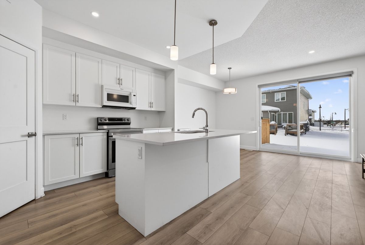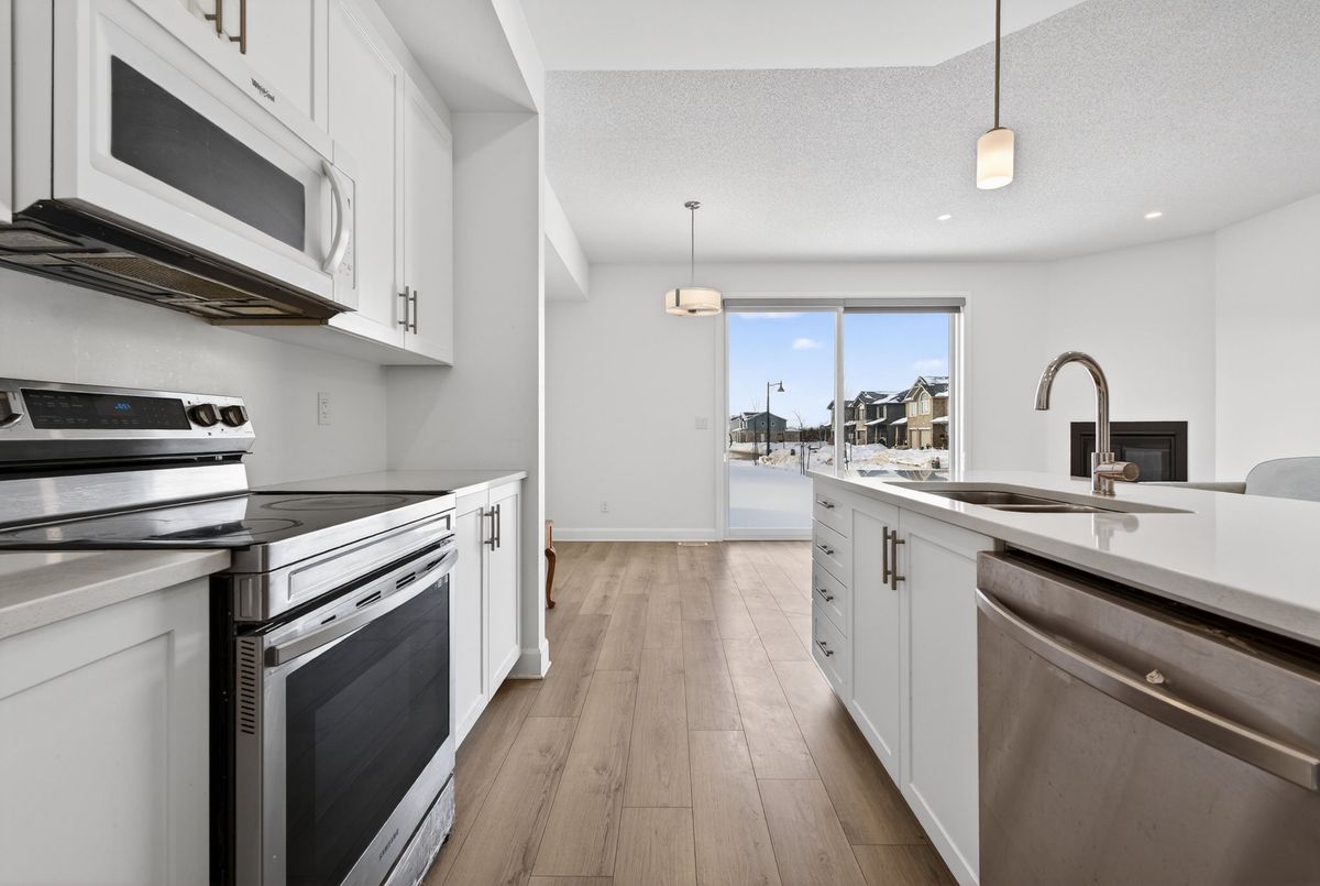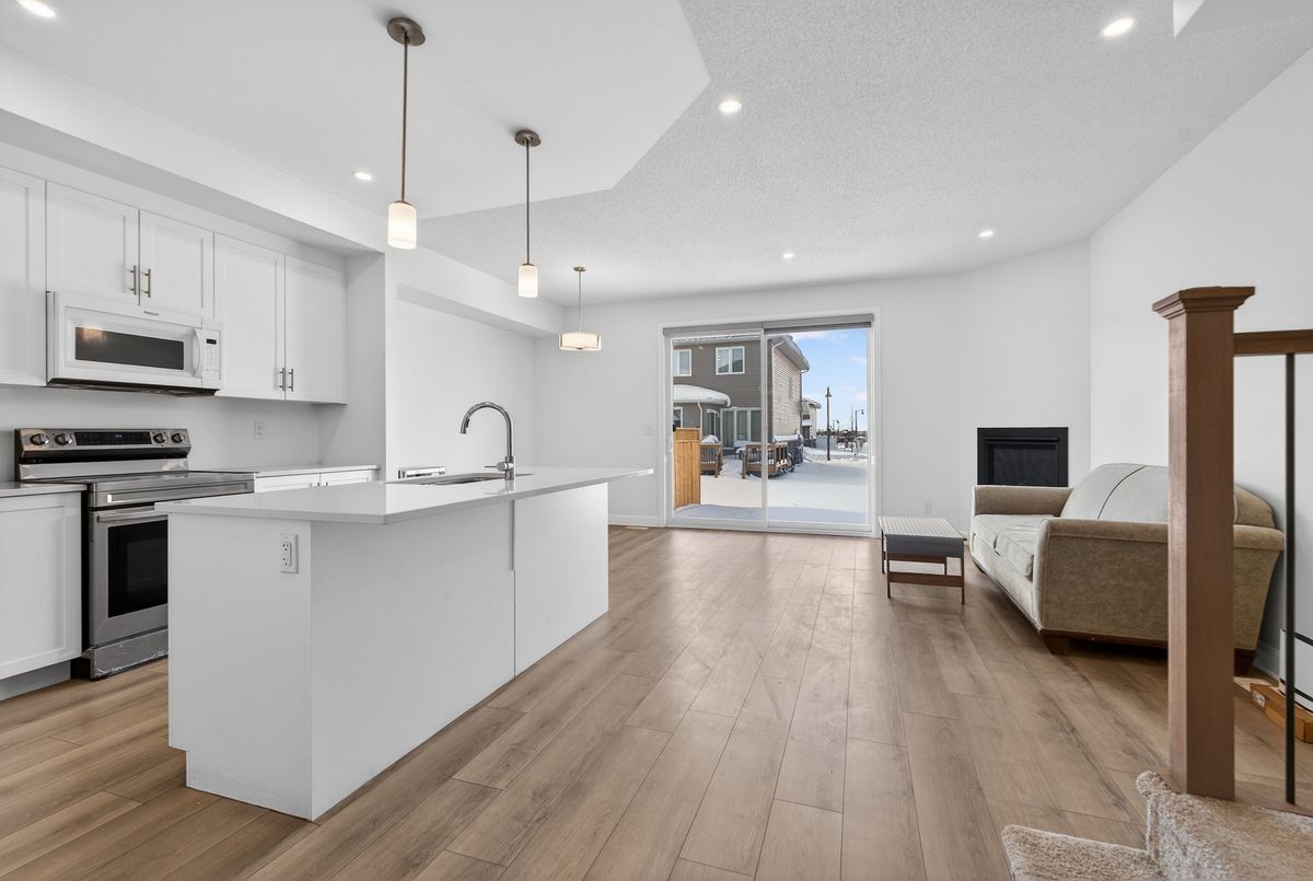 Beautifully Built Caraco Freehold Townhome Built on Large Corner Lot in Prestigious Woodhaven Area Offers 1525 square feet Above Ground of Living Space with 3 Bedrooms, 2.5 Washrooms and an impressive list of Features including Ceramic Tile Foyer plus Laminate Floor on Main Floor and a 9FT Ceiling on Main Floor. Upgraded Kitchen with Large Centre Island, Quartz Counter tops , Walk In Pantry , Pot Lighting & Built In Microwave , Bright and open Living Room with corner Gas Fireplace, POT Lighting and a Patio Door to Rear Yard. 3 Spacious Bedrooms on second floor including the Primary Bedroom with Walk In closet and 4 PC Ensuite Bathroom. Main Floor Laundry Room. Standard High Efficiency Furnace and Basement Bathroom Rough-In . Just Steps to Future Parks and Schools