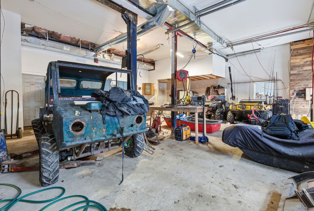 Opportunity to own a 2022 built,4-season home featuring a premium, heated 1,200+ sq ft workshop (equipped with 14,000 lb hoist & air compressor). This high-efficiency home offers an open-concept living space with soaring wood-panelled ceilings, pot lighting, and panoramic forest views. Why Move Here? 1. Ultimate Freedom: Located in an unorganized township, enjoy significantly lower property taxes and maximum flexibility for future projects with fewer building restrictions. 2. The Hobbyist's Dream: A massive, professional-grade workshop and dual garages provide unprecedented space for car restoration, boat storage, or trade-work that city zoning simply won't allow. 3. Four-Season Security: Dual heating (100k BTU propane + wood stove backup), tankless hot water, and Starlink internet ensure you stay connected and comfortable regardless of the weather. 4. Lake Lifestyle without the Taxes: Just steps from Seagull Lake and central to the region's best fishing and boating, enjoy the water without the high cost of waterfront maintenance.Includes hot tub room, outdoor pool, and security system. Note: Total sq ft includes residence, workshop, and garages as per seller. Buyer to verify all measurements,