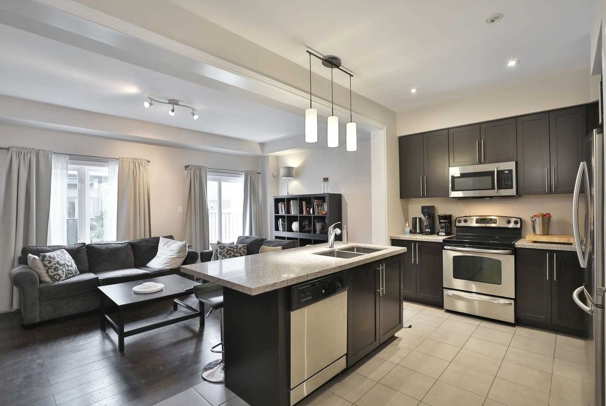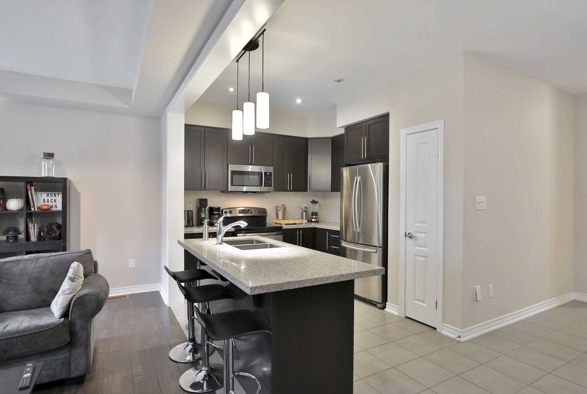 Amazing opportunity to live by the lake in style. This location is ideal for those needinghighway access, proximity to the new GO station, or wanting to take advantage of the WaterfrontTrails and quaint retail shops. The floor plan features a spacious foyer and 2-piecepowder-room, then opens up to a welcoming kitchen with upgraded quartz countertops, amplecounter and storage space and breakfast bar island. The second floor offers 2 generous sizedbedrooms, spacious 4-piece main bath and second floor laundry facilities. The large master isbright and spacious with a walk in closet and a well appointed ensuite bath featuring a walk-intiled and glass shower and soaker tub. The home also features a completely landscaped backyard, with a large deck spanning the width of the lot that offers views of the lake and amplespace to entertain during fair weather. A must see property, book your tour today.